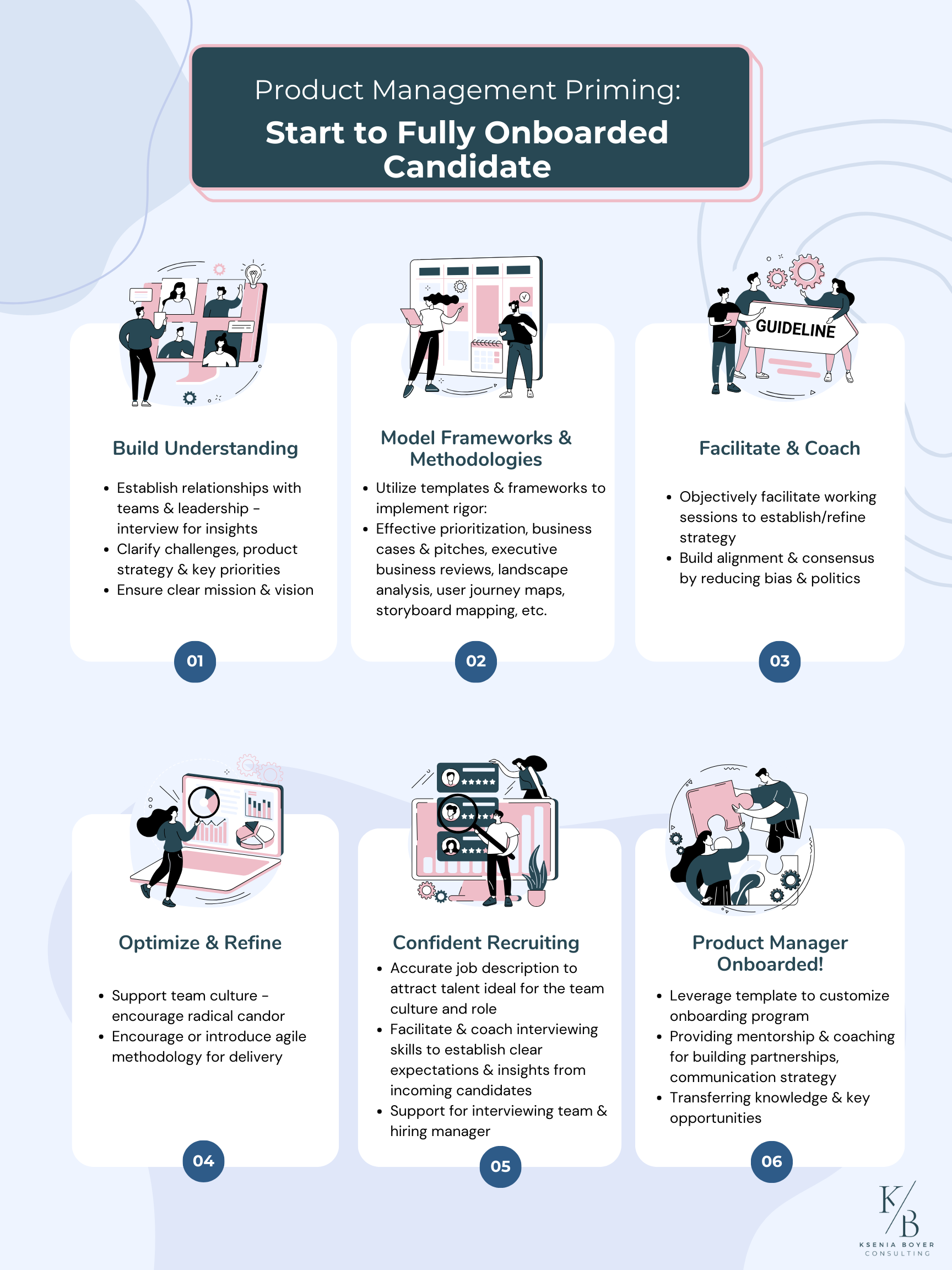 By helping your team(s) level up and establish a foundation of operating with clear understanding of prioritization techniques, user-related research (journey maps, experience reviews, focus groups, etc) & more, your environment can become ready to welcome a product manager and help them hit the ground running- with far less churn/ lead time and helping ensure greater satisfaction.